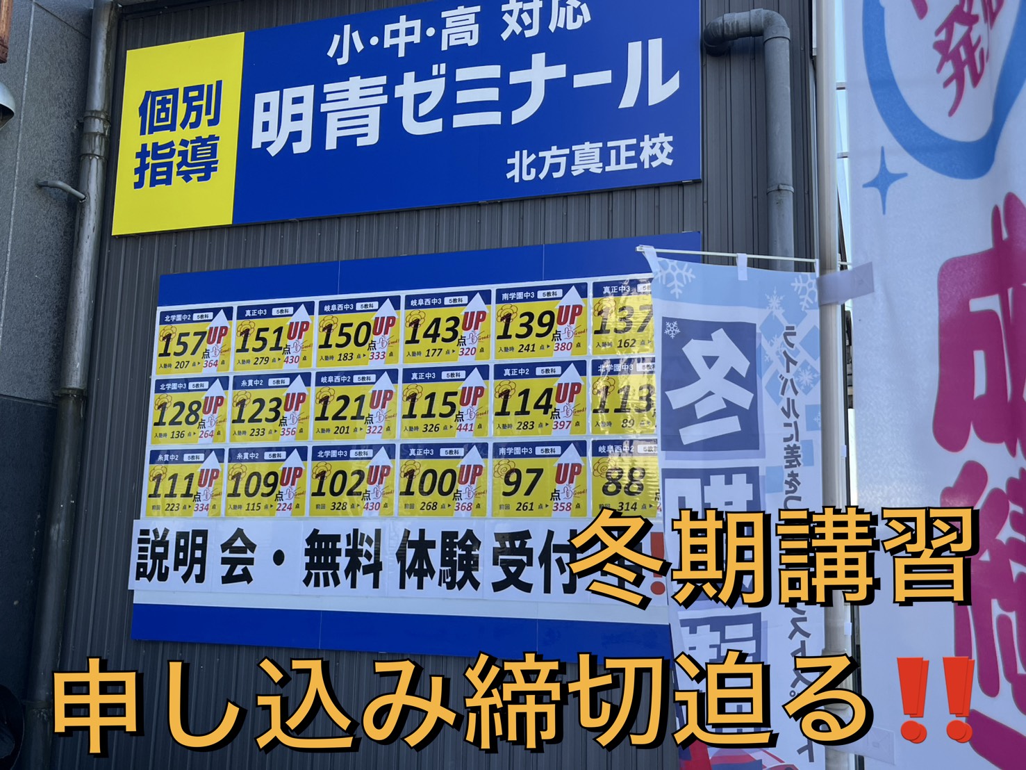 【 冬期講習 】の受付がもう間もなく締め切りになります!! 苦手を放置しない冬”にするために明青で予復習を始めませんか?