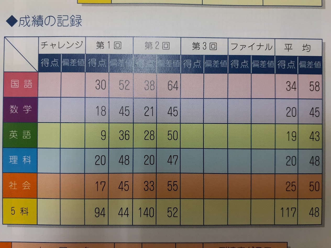 先日教室で実施した第2回沖縄県統一プレ入試の結果が返ってきました。