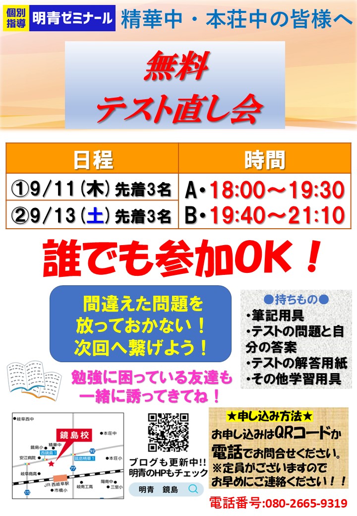 無料テストやり直し会を開催します!