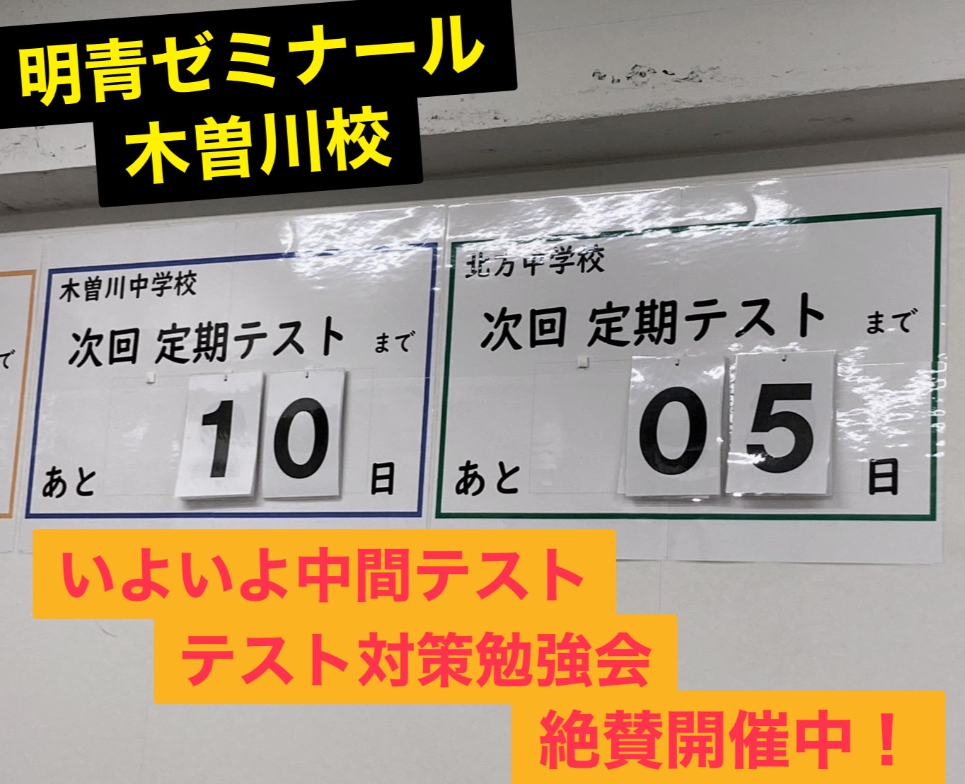 木曽川中学校の中間テストまで残り10日。提出用だけでなく、学校ワークのやり直しや暗記の反復が力になります。明青ゼミナールでは学習計画のチェック、自習室利用、テスト前勉強会で集中できる環境を整えています。体験授業も受付中です。