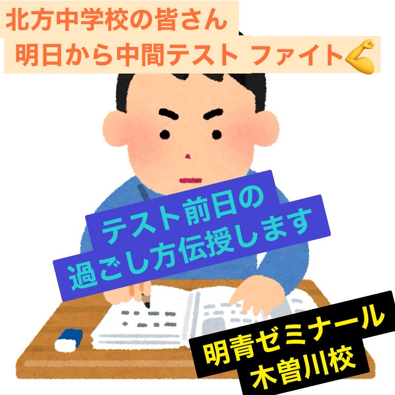 北方中学校は明日から2学期中間テストですね!定期テスト前日は、あせって新しいことを覚えるより「復習・準備・睡眠」がカギ。持ち物をそろえ、早めに寝て、スッキリとした気持ちで本番に臨もう!ここまでの努力を信じて大丈夫!