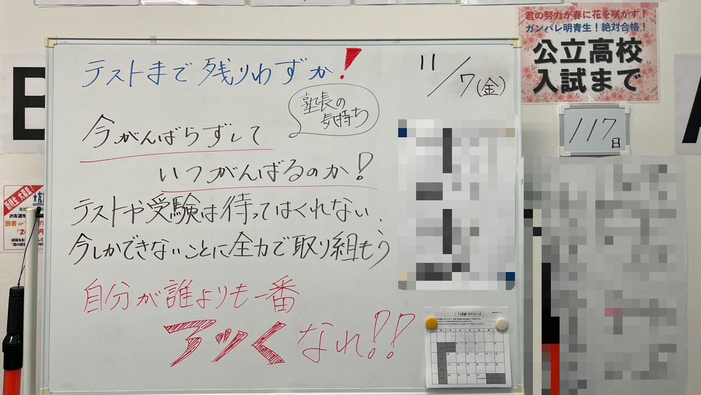 特に受験生の皆さんは、公立受験まで残り116日です。