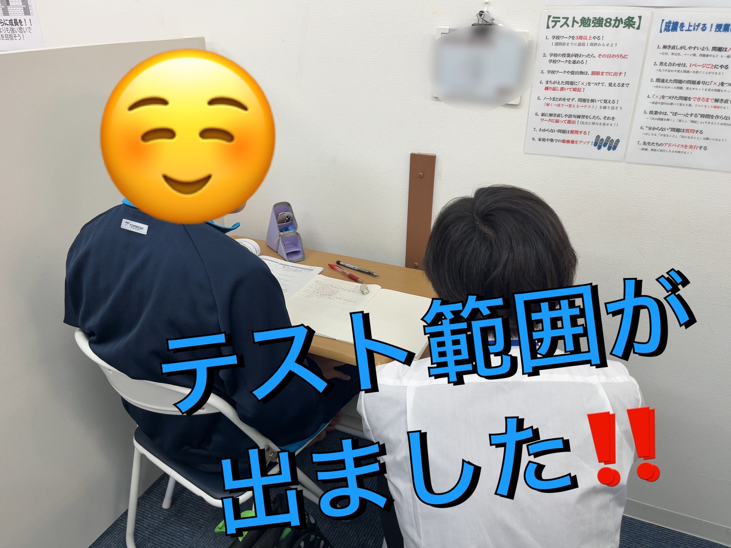 さて、今日中学3年生の生徒さんがテスト範囲を持ってきてくれました!