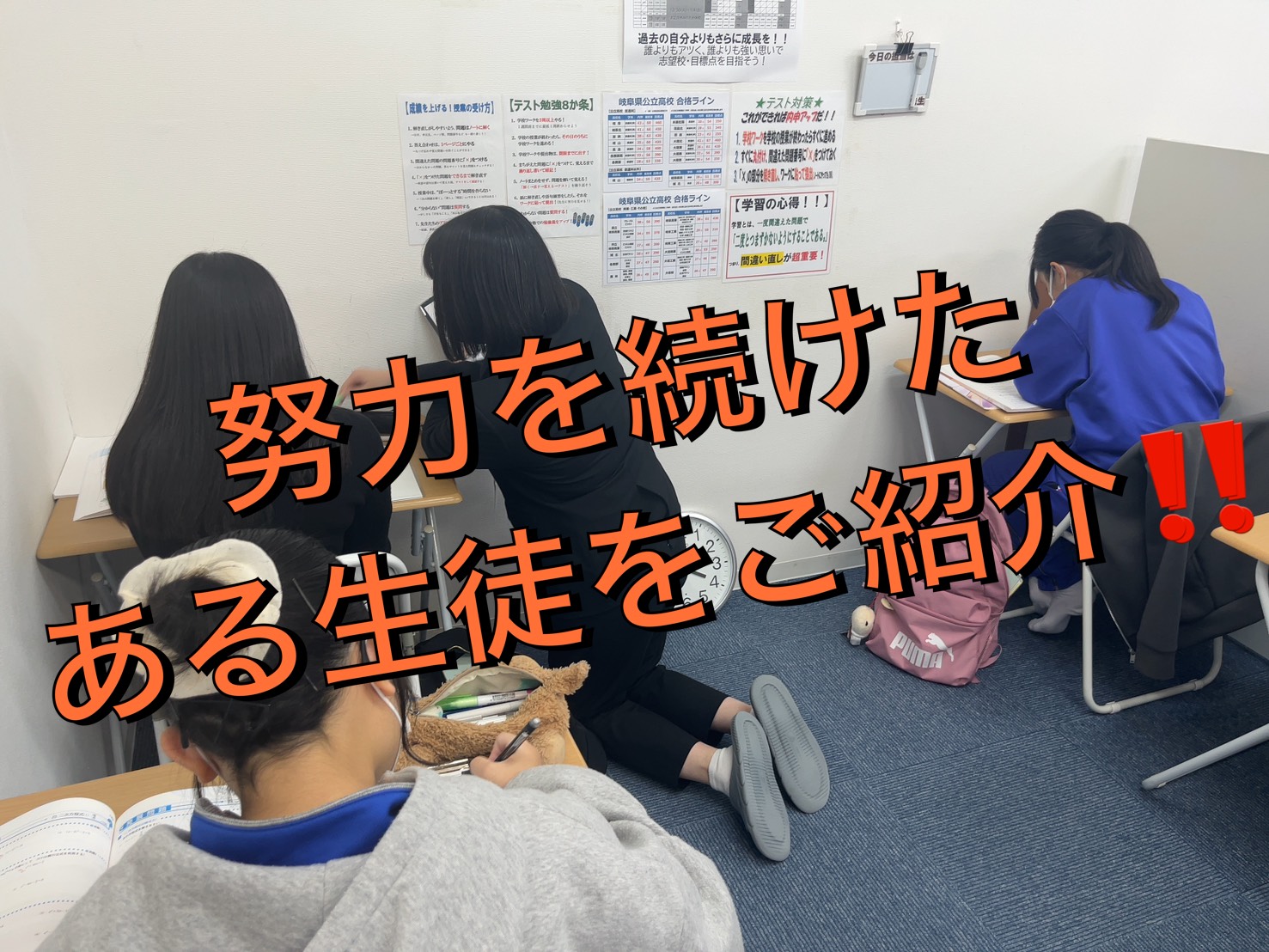 学年末テストが終わり、変わらずにその生徒さんは次の受験に向けて変わらず勉強を続けてくれています。その意志の強さには私たちも感心させられます!