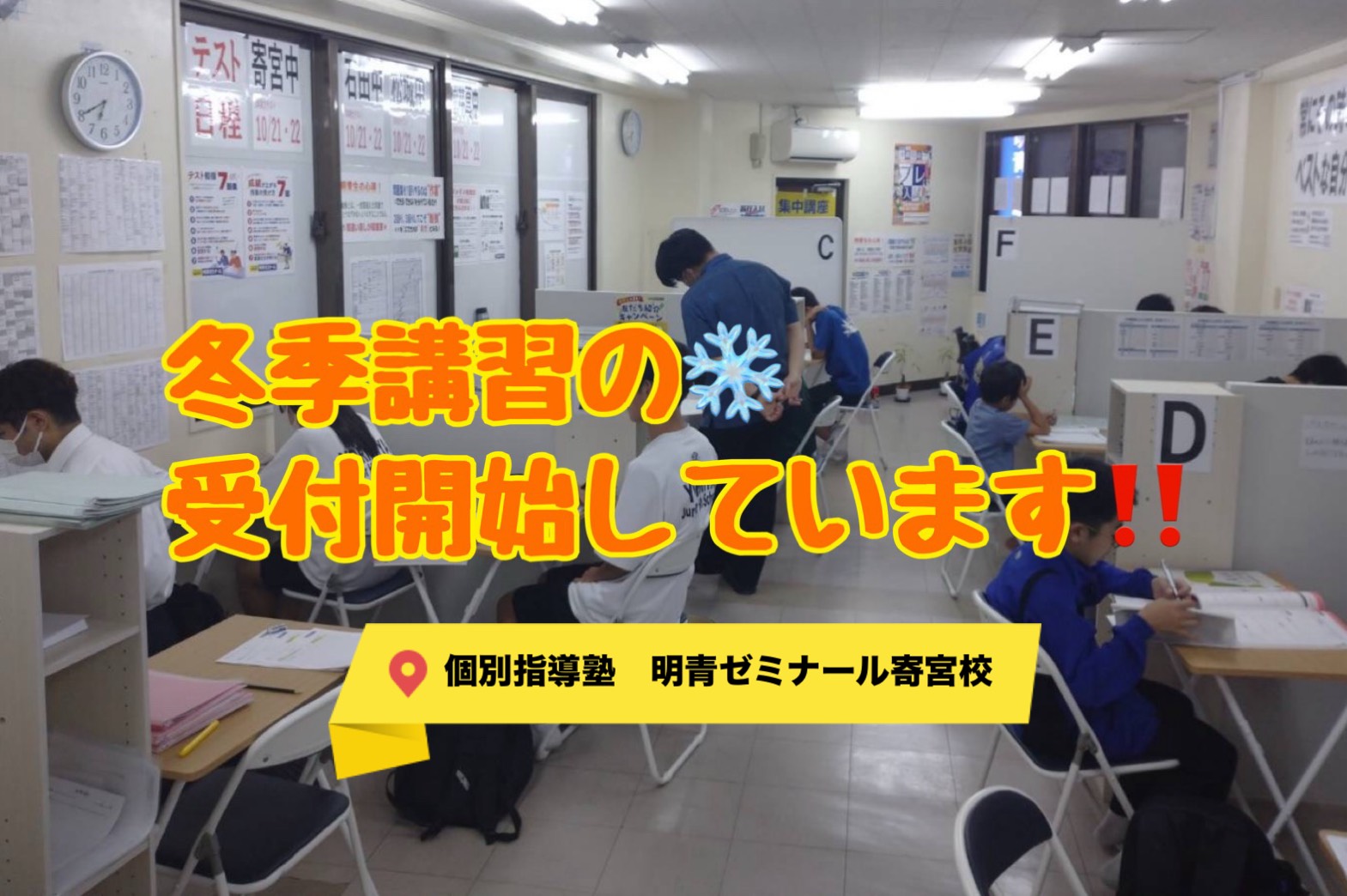 明青ゼミナール寄宮校では、冬期講習の受付を開始しています!! この冬で一緒に苦手克服しませんか??2学期期末テスト向け準備しませんか??? 勉強でお困り方、ぜひお話聞かせてください^^